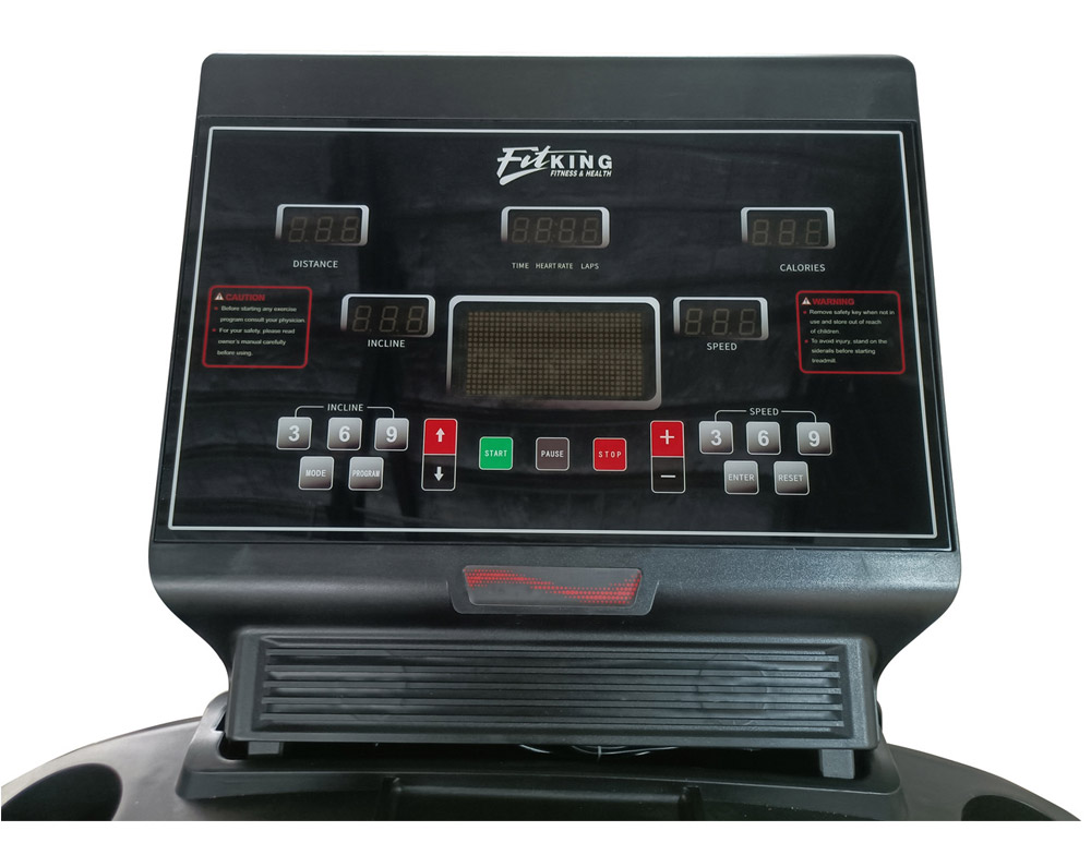 - EXQUISITE SMOOTH CONTROL PANEL WITH 1 BIG DOT MATRIX LED PROGRAM WINDOW & 6 LED DISPLAY SPEED, TIME, DISTANCE, CALORIE, PULSE & INCLINE.
